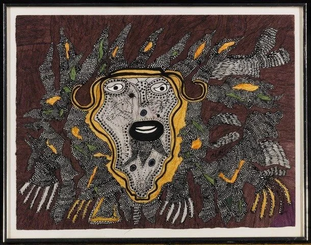 Mohammed Mrabet, Untitled #1, 1980, Ink and watercolor on cardboard, 9.75" x 12.75"