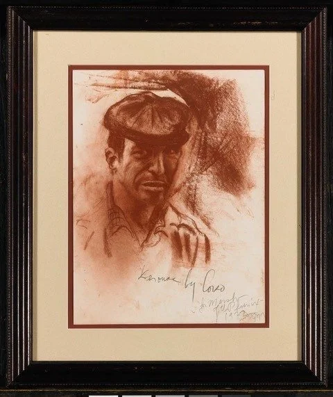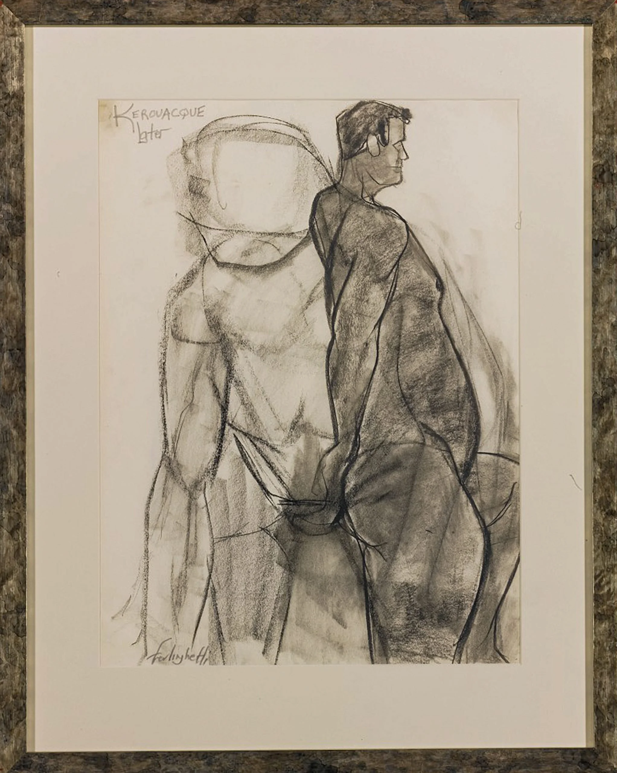Lawrence Ferlinghetti, Jack Kerouac Portrait "Kerouacque Later", 1980s, Charcoal on paper, 18" x 24"