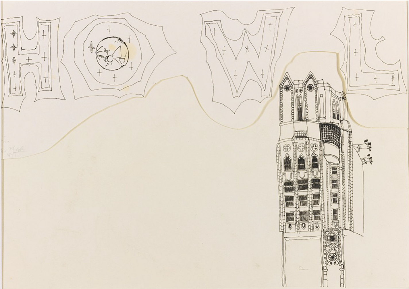 Robert LaVigne, A study for the cover of the 1971 Grabhorn Hoyem edition of "Howl" by Allen Ginsberg, 10" x 15"