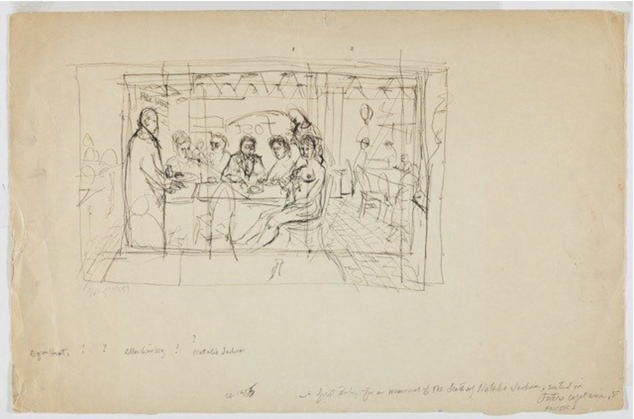 Robert LaVigne - Study for memorial for Natalie Jackson at Foster's Cafeteria,1957. 19 7/8" x 13", pencil on paper.