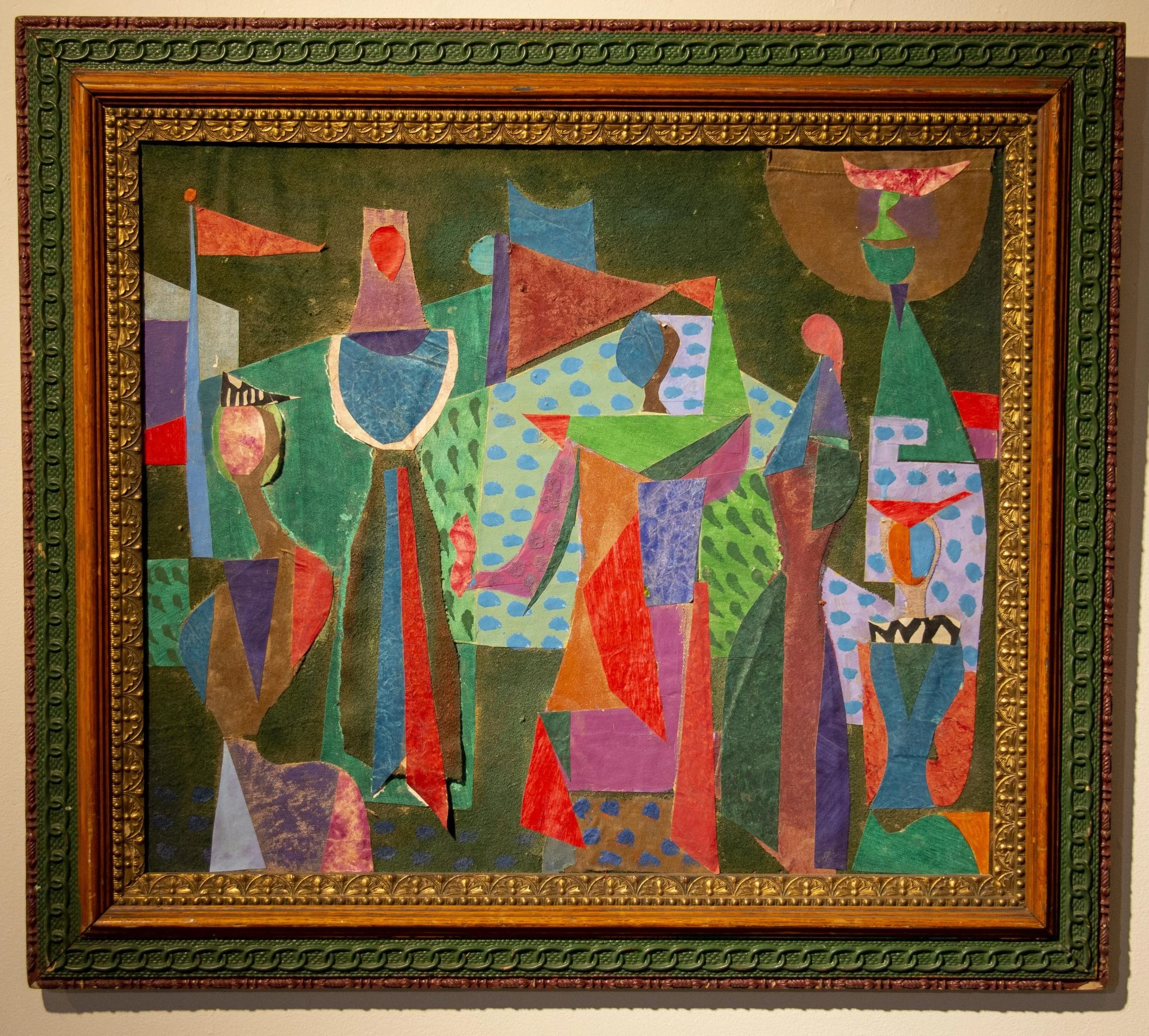 Jean Varda, The Preacher, c. 1954, Paper, Textiles, Leather on Masonite, 26" x 24"