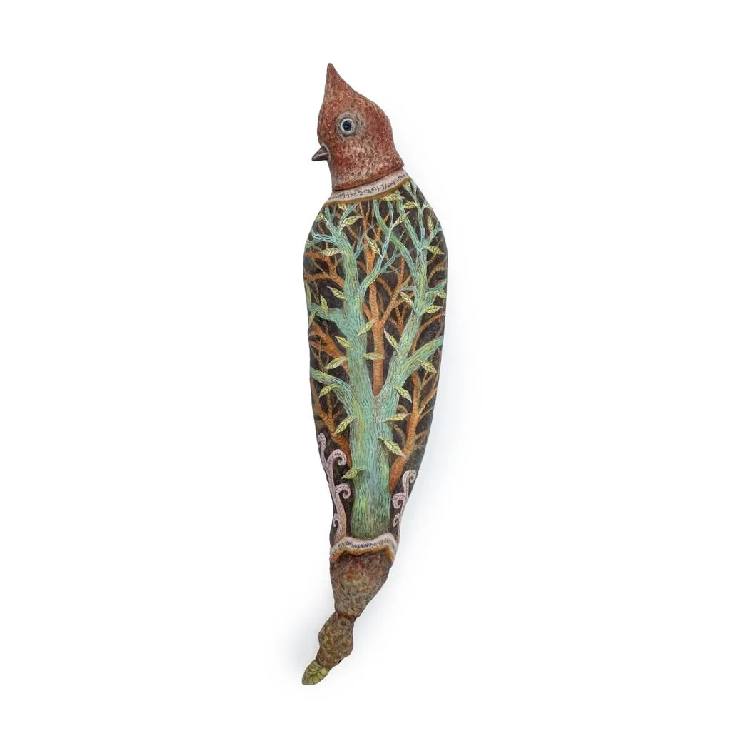 Deborah Rogers, A Place for the Birds to Sing, 2025, ceramic with mixed media, 12" x 4" x 4"