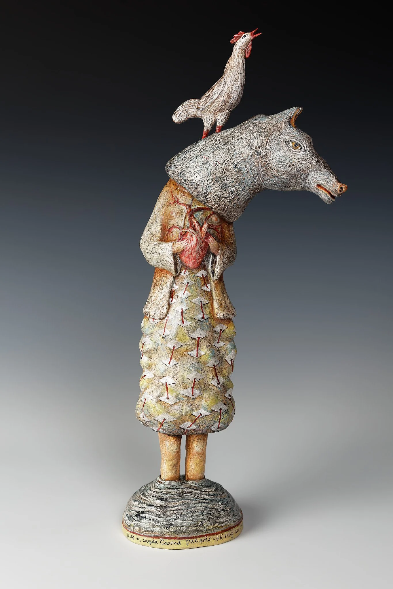 Deborah Rogers (b. 1954) is a self-taught American ceramic sculptor. She uses air-dry clay to create charming pieces that address subjects as wide-ranging as marital-friction to childhood bee stings.