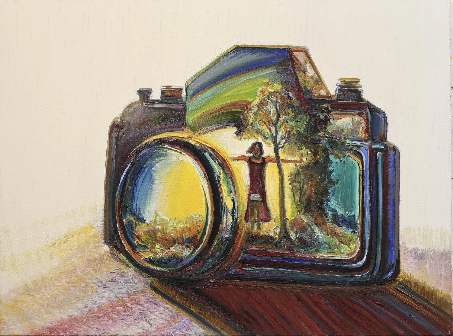 Jeff Myers, Her Camera World, 2025, oil on canvas, 30 x 40 inches
