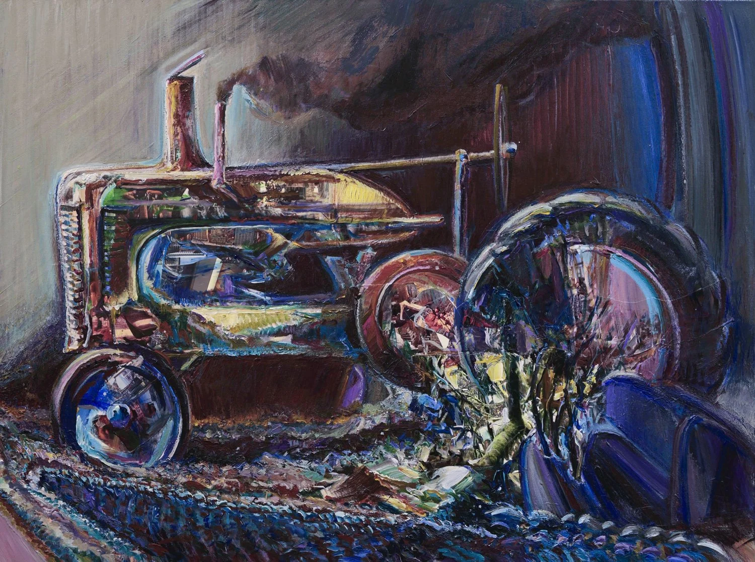 Jeff Myers, Moonlight Tractor, 2025, mixed media on canvas, 36 x 48 inches