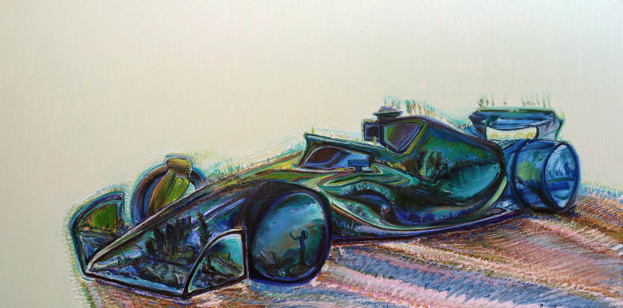 Jeff Myers, Formula 1, 2025, oil on canvas, 36 x 72 inches