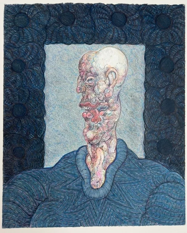 Martin Camarata, Self-Portrait of Dali, 1977, Ink and colored pencil on paper, 24.5" x 20"