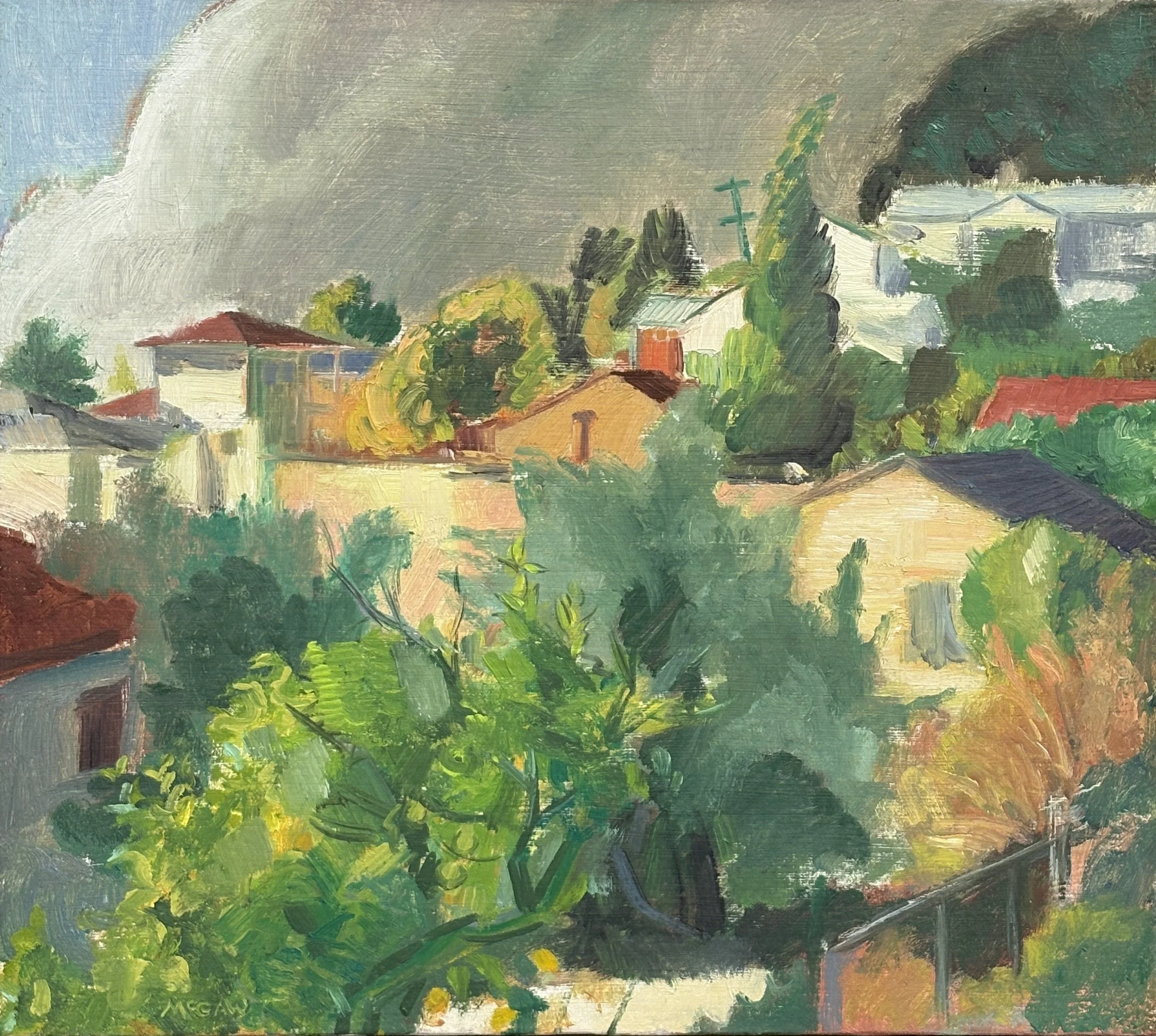 Bruce McGaw, Backyards, Santa Clara St., Richmond, 1987, oil on canvas, 12 x 13.5 inches