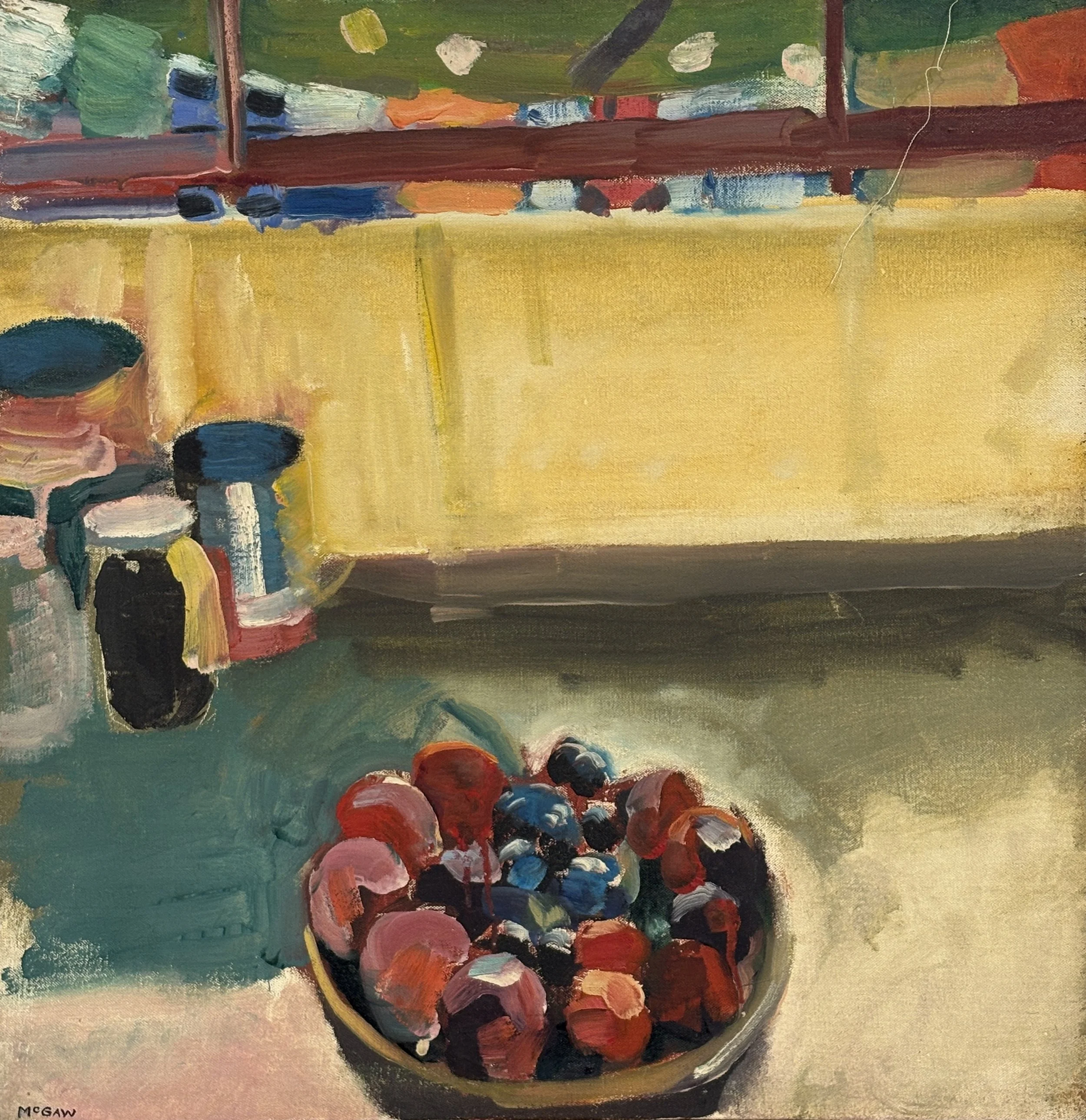 Bruce McGaw, Studio Window and Plums, 1965, oil on canvas, 20 x 19.5 inches